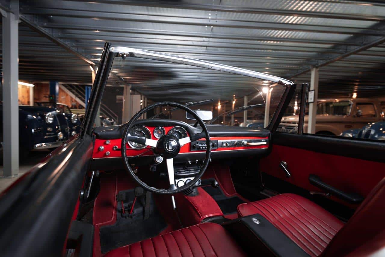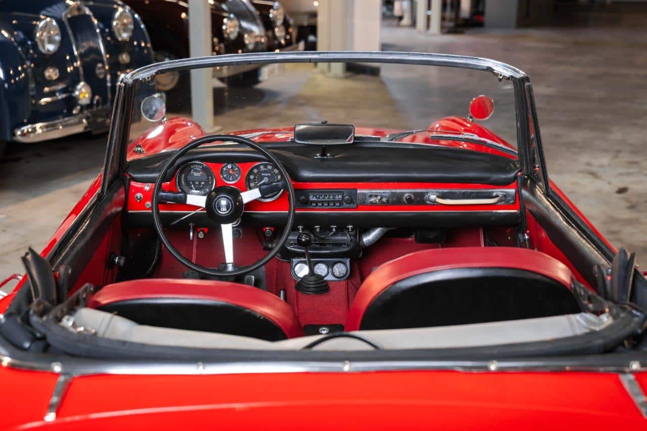 La Fiat 1500 Cabriolet H se distingue aussi par une sensation de maturité accrue. La tenue de route est plus rassurante, la direction précise pour l’époque, et le confort de suspension reste l’un de ses grands atouts. Fiat réussit ici un équilibre rare : une voiture décapotable élégante, utilisable au quotidien, suffisamment performante pour les longues distances, et sans les contraintes mécaniques souvent associées aux cabriolets plus sportifs. L’intérieur, soigné sans être ostentatoire, reflète cette philosophie, avec une instrumentation claire, des sièges confortables et une qualité de fabrication qui place le modèle au-dessus de la moyenne du segment.