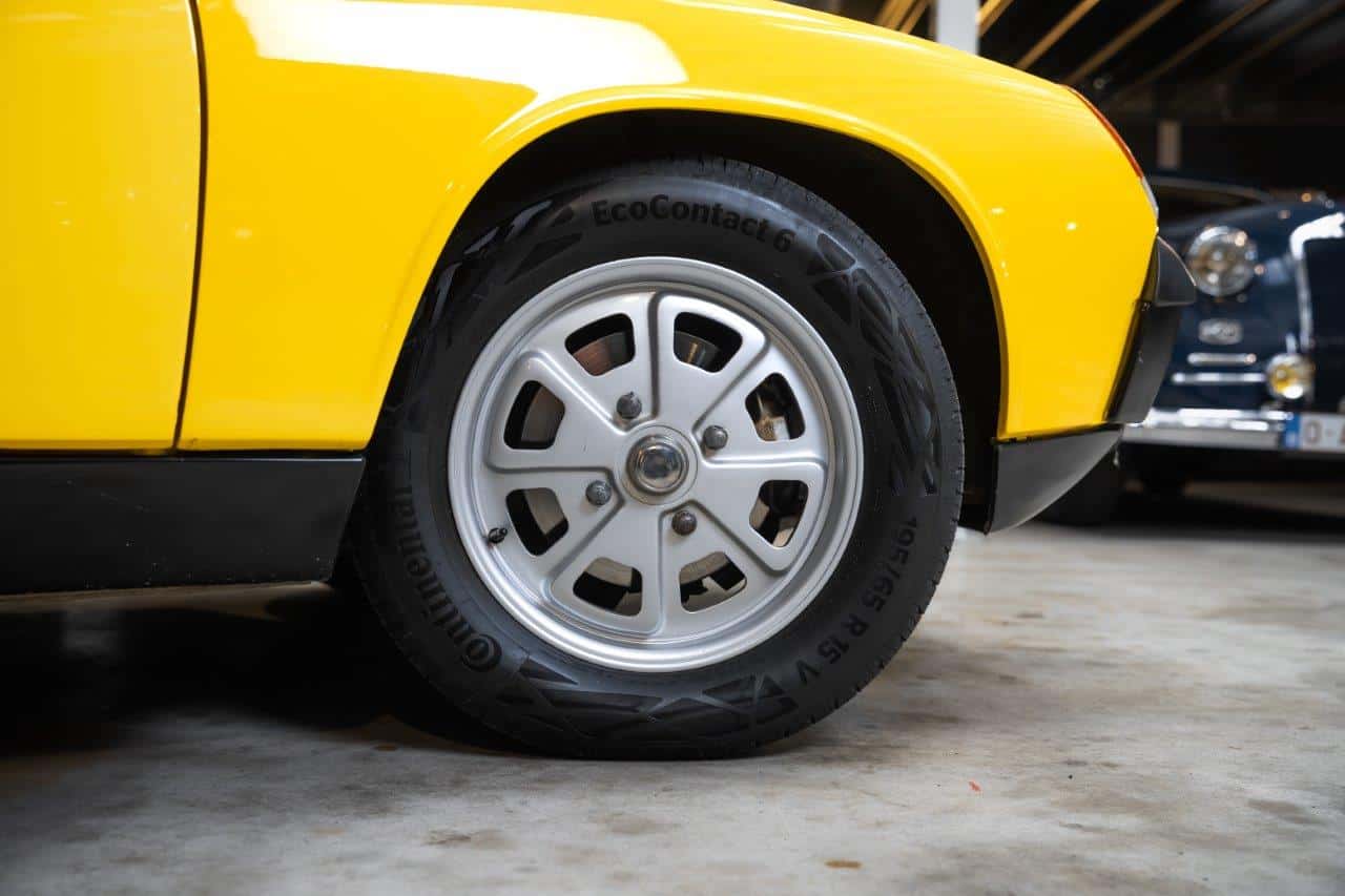 La conception de la 914 privilégie la légèreté et l’efficacité. Son châssis monocoque, sa position de conduite basse et son toit Targa amovible en font une voiture aussi plaisante sur route que sur parcours sinueux. La suspension repose sur des barres de torsion à l’avant et des ressorts hélicoïdaux à l’arrière, avec quatre freins à disque, garantissant un comportement très sain et une grande précision de conduite. Grâce à son moteur central et à son empattement court, la 914 se distingue par une agilité remarquable, souvent saluée par la presse spécialisée de l’époque.