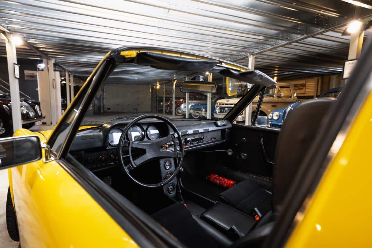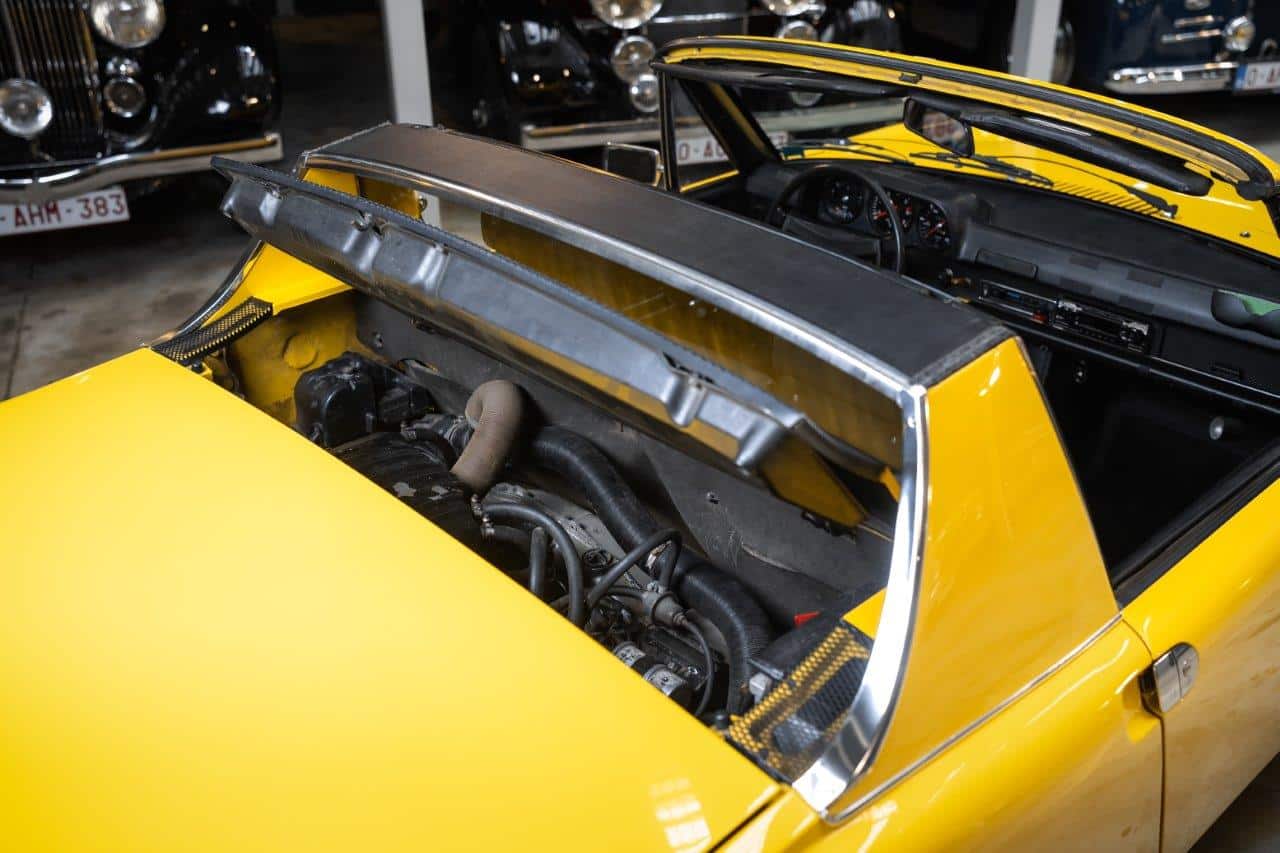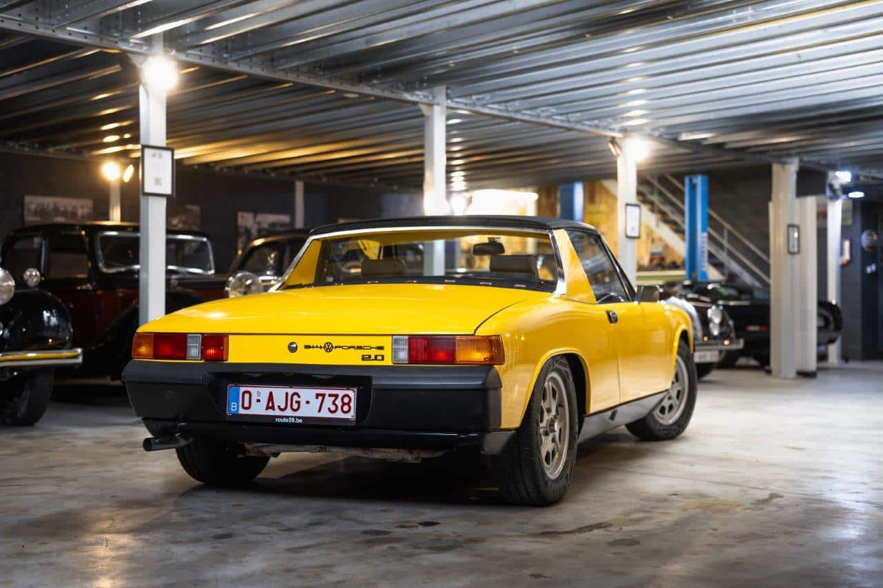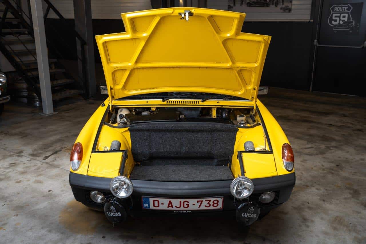 L’exemplaire présenté est une Porsche 914 2.0 immatriculée pour la première fois en mai 1973 et livrée neuve en Belgique, ce qui en fait une voiture d’origine européenne. Elle n’a connu que trois propriétaires depuis l’origine. Son second propriétaire, qui était le patron de Porsche Belgique, a entrepris une restauration complète de type “frame-off”, remettant la voiture entièrement à nu pour la reconstruire dans les règles de l’art. La carrosserie a été restaurée dans sa teinte d’origine, tandis que l’intérieur a été entièrement refait. Sur le plan mécanique, les culasses ont été révisées, les cardans remplacés récemment, et la voiture est équipée d’un différentiel autobloquant, améliorant encore la motricité et le plaisir de conduite. Très bien entretenue, la voiture se présente aujourd’hui dans un très bel état, prête à prendre la route tout en offrant le caractère léger et sportif qui a fait la réputation de la 914 2.0.