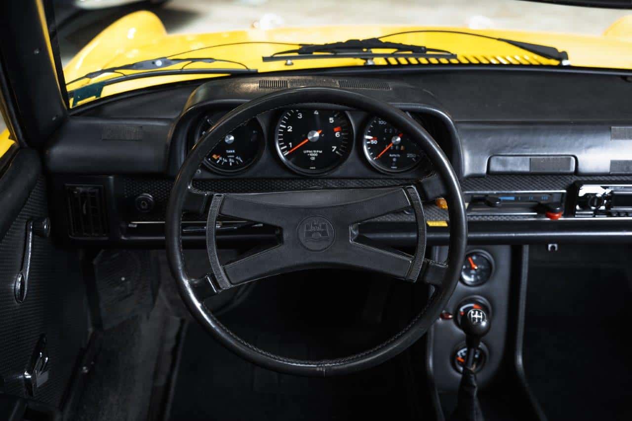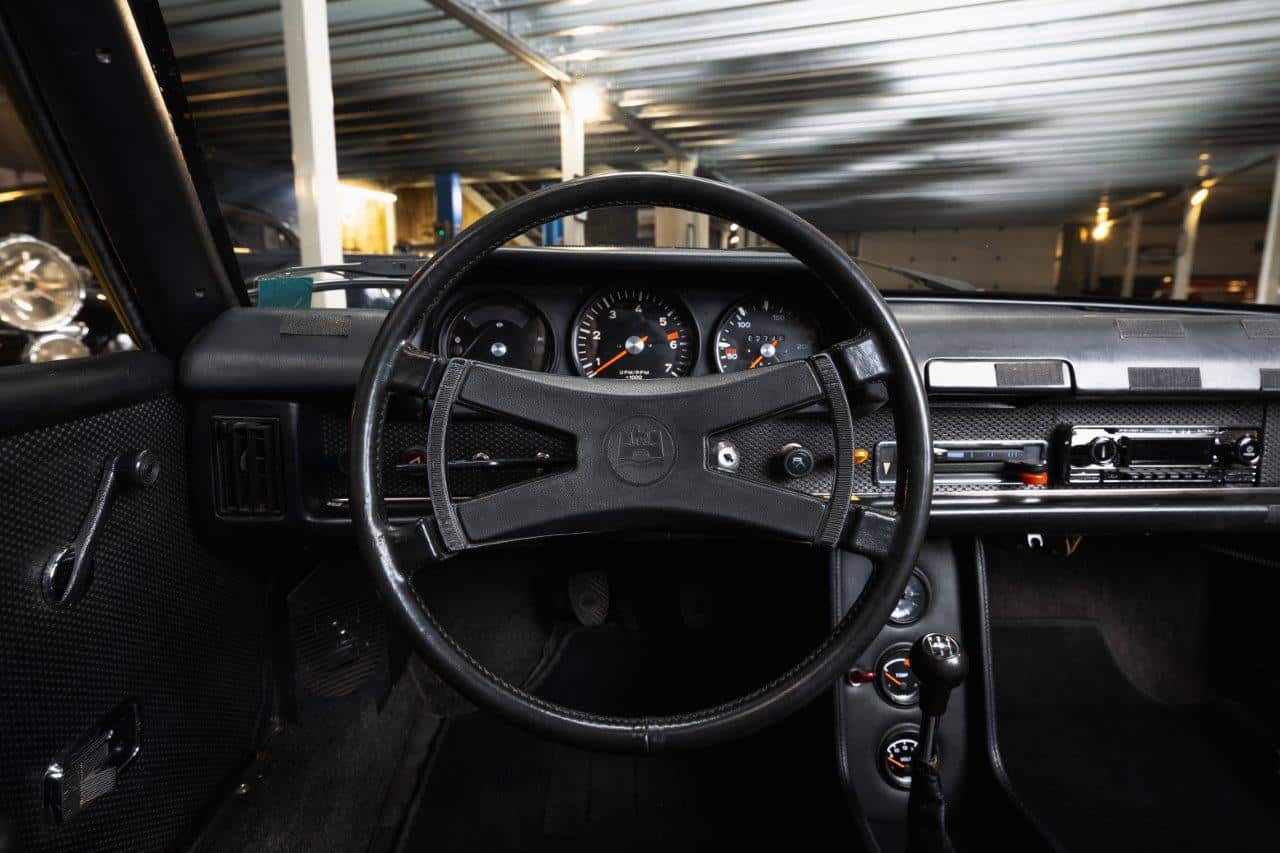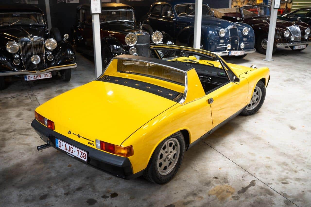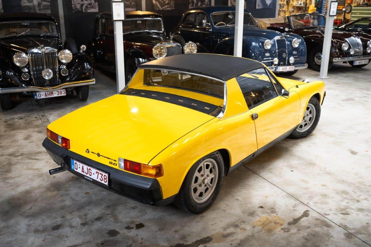 L’exemplaire présenté est une Porsche 914 2.0 immatriculée pour la première fois en mai 1973 et livrée neuve en Belgique, ce qui en fait une voiture d’origine européenne. Elle n’a connu que trois propriétaires depuis l’origine. Son second propriétaire, qui était le patron de Porsche Belgique, a entrepris une restauration complète de type “frame-off”, remettant la voiture entièrement à nu pour la reconstruire dans les règles de l’art. La carrosserie a été restaurée dans sa teinte d’origine, tandis que l’intérieur a été entièrement refait. Sur le plan mécanique, les culasses ont été révisées, les cardans remplacés récemment, et la voiture est équipée d’un différentiel autobloquant, améliorant encore la motricité et le plaisir de conduite. Très bien entretenue, la voiture se présente aujourd’hui dans un très bel état, prête à prendre la route tout en offrant le caractère léger et sportif qui a fait la réputation de la 914 2.0.