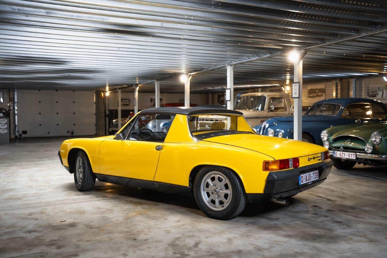 Présentée en 1969 et commercialisée à partir de 1970, la Porsche 914 est le fruit d’une collaboration entre Porsche et Volkswagen. À cette époque, Volkswagen cherche une remplaçante à la Karmann-Ghia tandis que Porsche souhaite proposer un modèle d’entrée de gamme sous la 911. Le projet commun donne naissance à une voiture très différente de la production Porsche traditionnelle : une sportive légère à moteur central, architecture jusque-là réservée aux voitures de compétition. Cette configuration permet une excellente répartition des masses et procure à la 914 un comportement routier particulièrement équilibré.