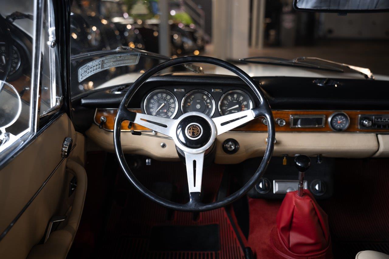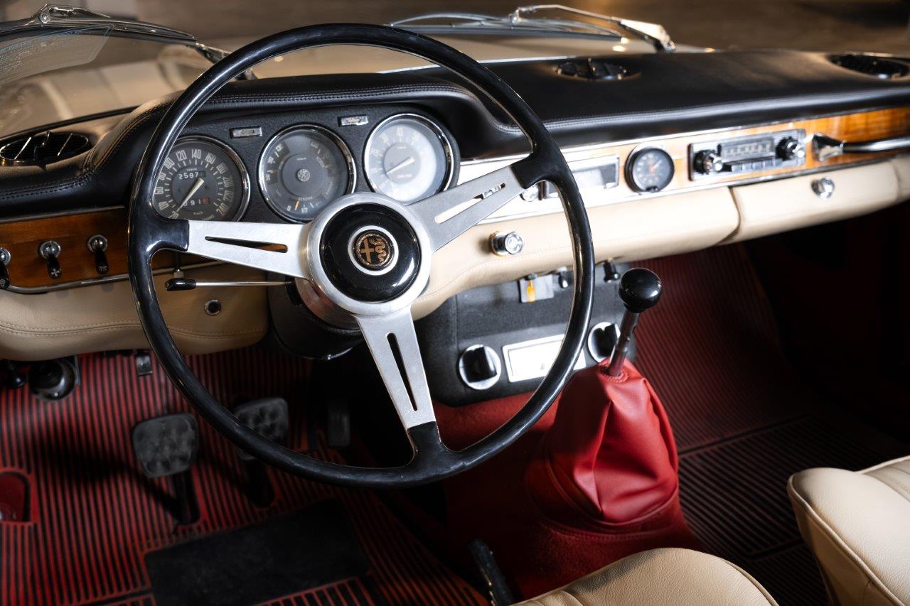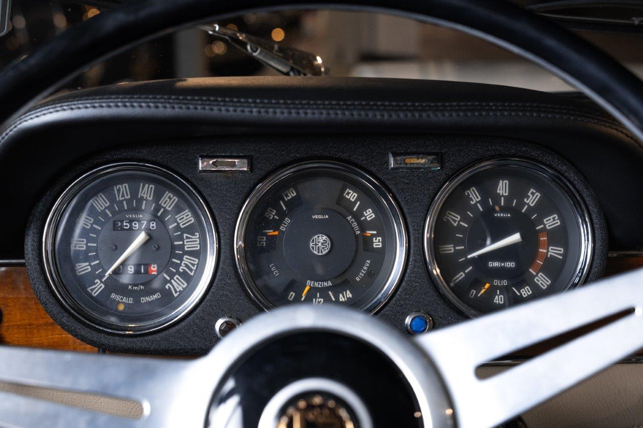 The example presented here belongs to this second series. Its first owner is said to have been the engineer Carlo Chiti, an emblematic figure in Italian motor sport and the architect of Alfa Romeo competition engines. It was he who replaced the original Solex carburetors with Weber units fitted with individual filters, improving the engine’s breathing and liveliness. The car was subsequently owned by Ettore Delli Carri, veterinary surgeon and host of the Italian TV wildlife show “Il Giardino Straordinario”. It was he who took steps to register the car with the ASI (Automotoclub Storico Italiano).